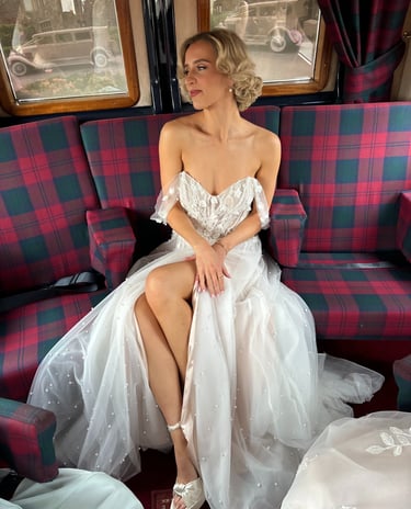 The moment you step aboard, you’re wrapped in an atmosphere that feels warm, cinematic, and deeply personal, like the universe decided to give you your own moving bridal lounge.